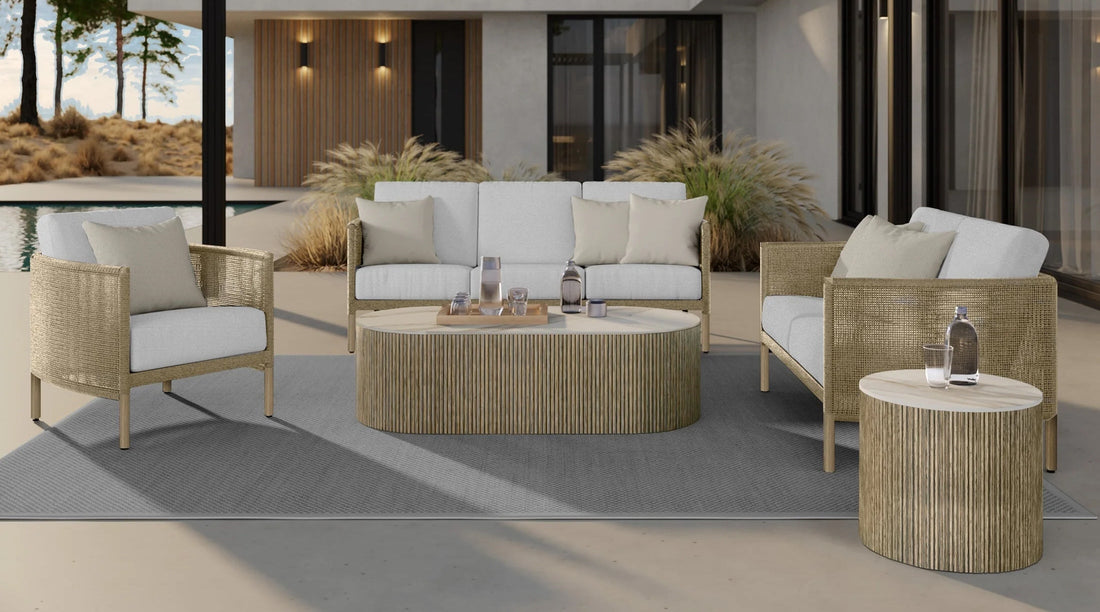 Furniture pick: The Napili Sofa brings the neutral trend home with UV-resistant fabric and deep, comfy cushions—great for relaxing or entertaining. Its warm taupe pairs perfectly with colorful throw pillows and a rustic coffee table. It is low-maintenance and built for lounging.