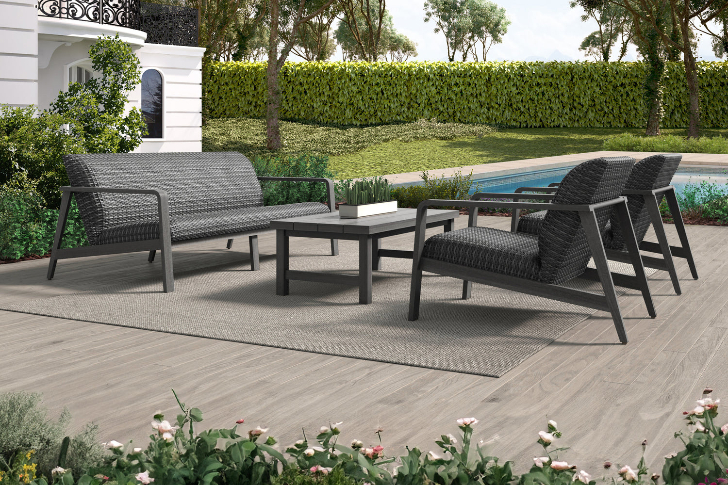 The Brooklyn collection features a durable aluminum frame with a stylish faux-wood...