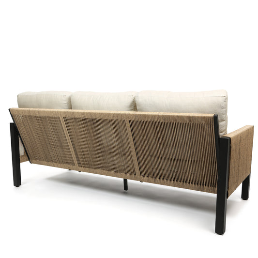 The Cardiff collection from Ebel, features a sturdy Black aluminum frame with Barley woven sides and back and big plush outdoor safe cushions.