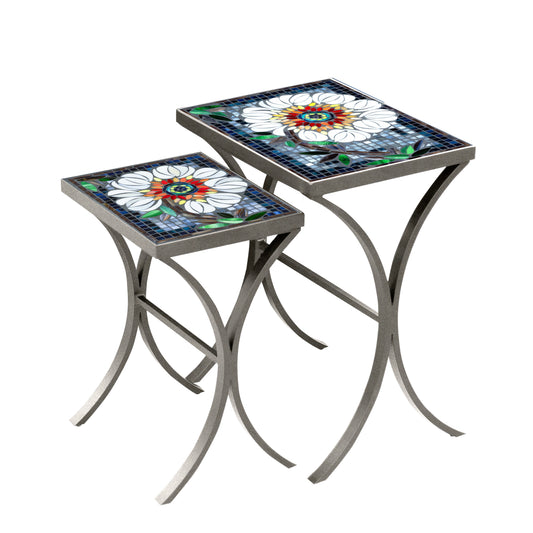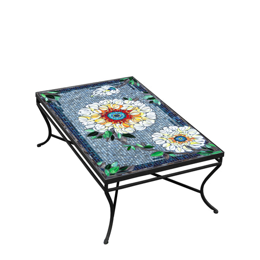 The beautiful mosaic tables from Neille Olson KNF designs come in round, rectangle, oval and square tops and have hand cut Smoothcastâ„¢ glass tiles that ensure a flat smooth surface.