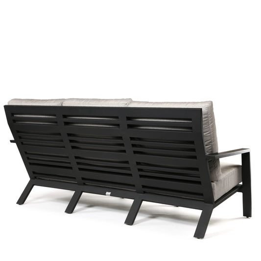 The Costa collection from RCC/Ebel features a contemporary frame design with a textured Black powder coat finish. Available in both dining and deep seating with plush Sunbrella cushions.