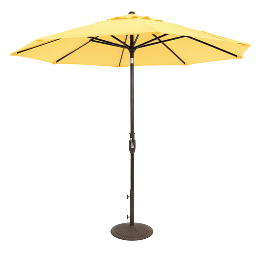 Treasure Garden 9’ Market Umbrella with Auto Tilt: Crafted with a robust aluminum frame and a resilient Sunbrella canopy, this umbrella provides excellent UV protection and is designed to endure outdoor conditions. Its auto-tilt feature allows for effortless adjustment of the canopy angle to maximize shade throughout the day. Available in various colors to suit different outdoor settings, it's a versatile choice for enhancing comfort and aesthetics in any patio or garden area.