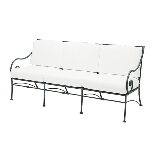 Made with long lasting and corrosion resistant wrought iron, the Sheffield collection with its scrolling curved arms and lattice woven seat and back captures that timeless look of classic outdoor furniture.