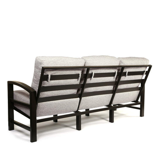 The Lakeside patio furniture collection from Tropitone boasts a contemporary design, offering cushion, sling, and padded sling options. Featuring a Rich Earth finish complemented by Bluepoint Flax deep seating cushions and Beige Grey durable slings, it provides both style and comfort for any outdoor space.