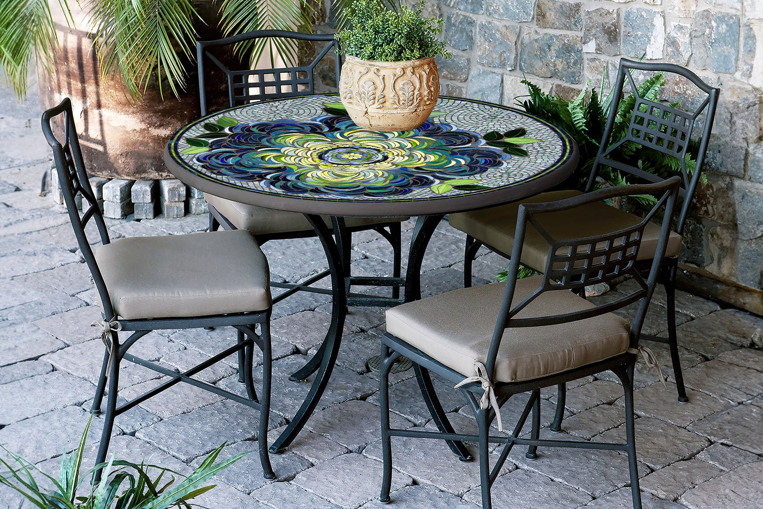 Classic Garden Mosaic Stone Top Tables