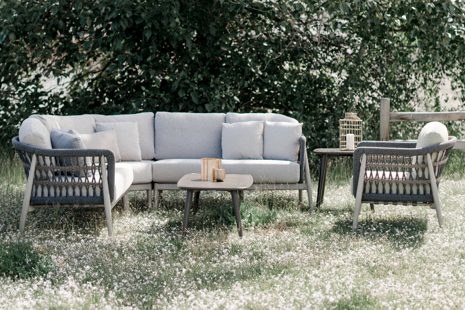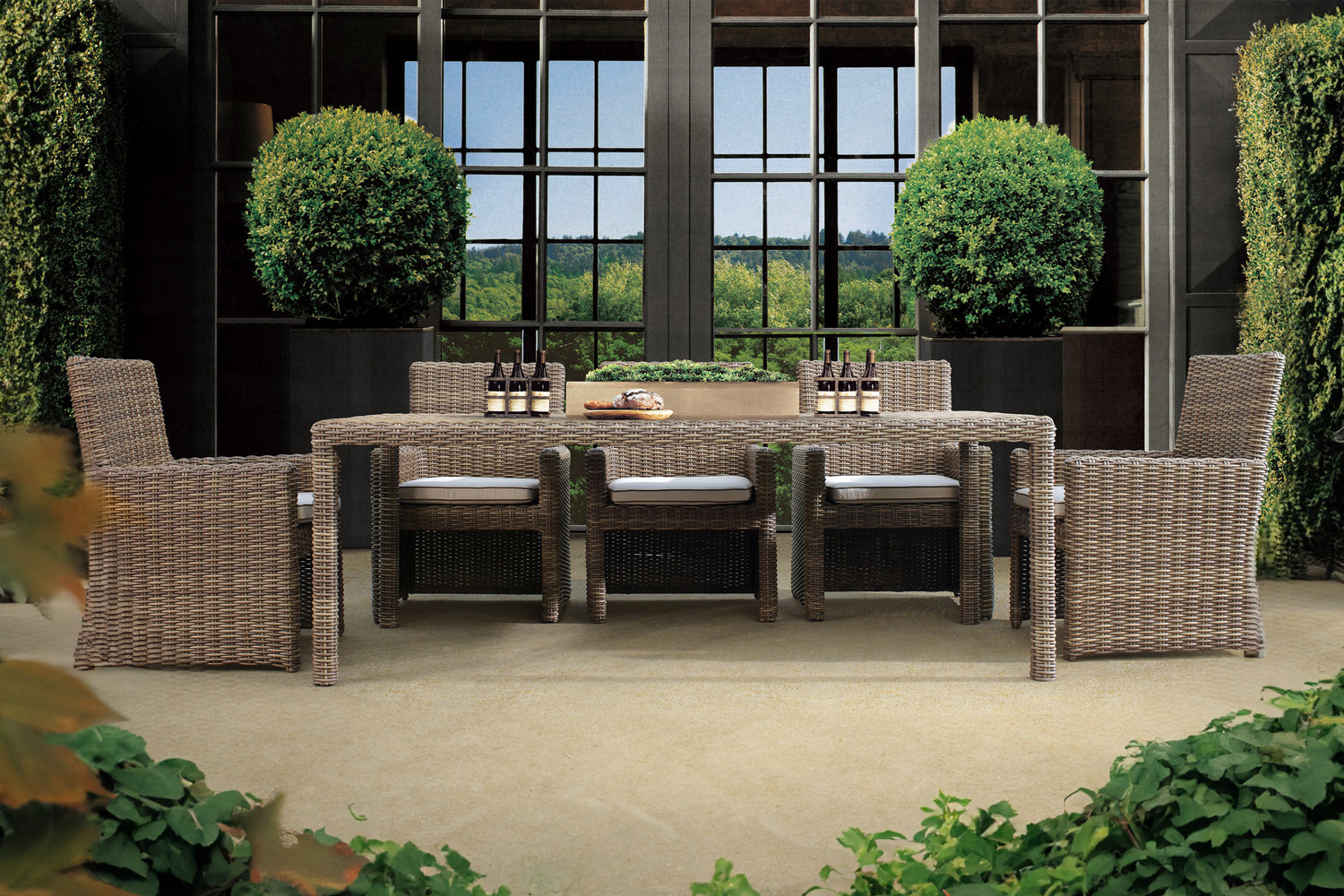 Wrapped with a driftwood resin wicker, the Coronado collection from Sunset West...