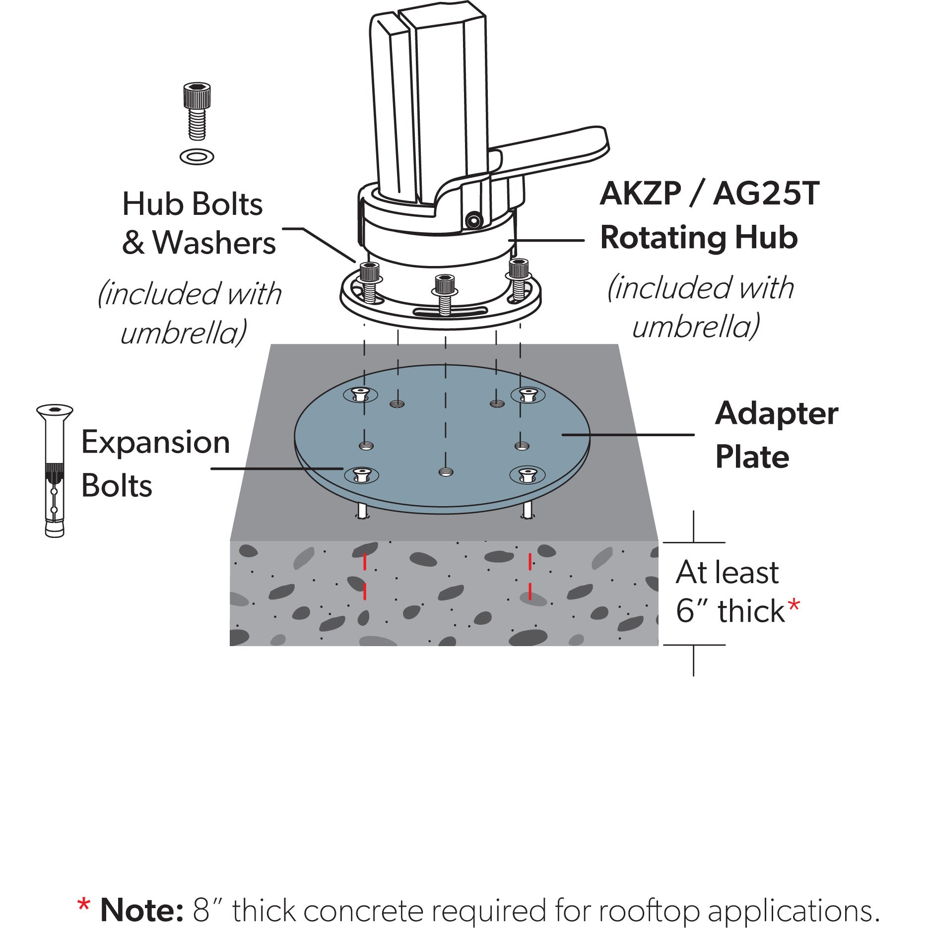 - Mount your AKZ Plus or AG25T cantilever umbrella directly to an existing concrete slab for a secure, permanent installation