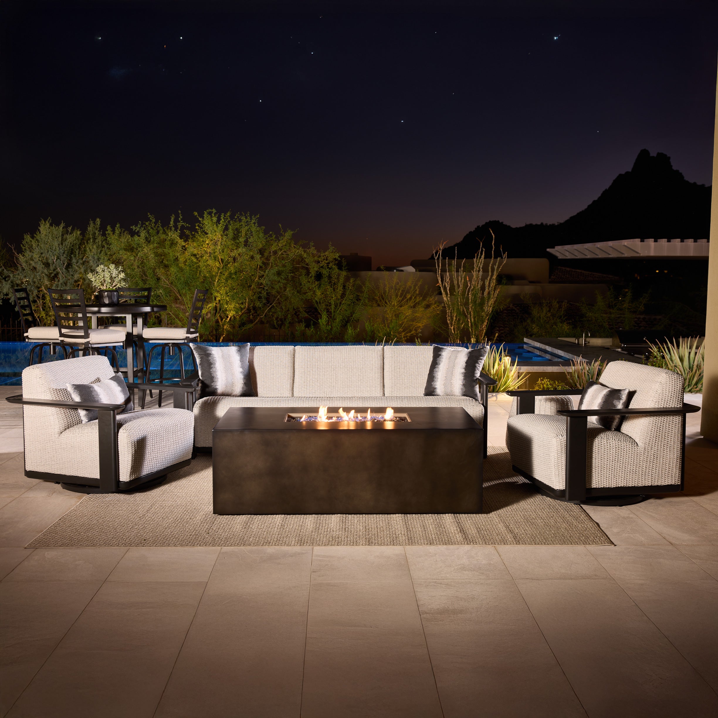 - Frame: Aluminum with Cocoa or Onyx finish and woven-in cushions with Hazel or Pearl weave