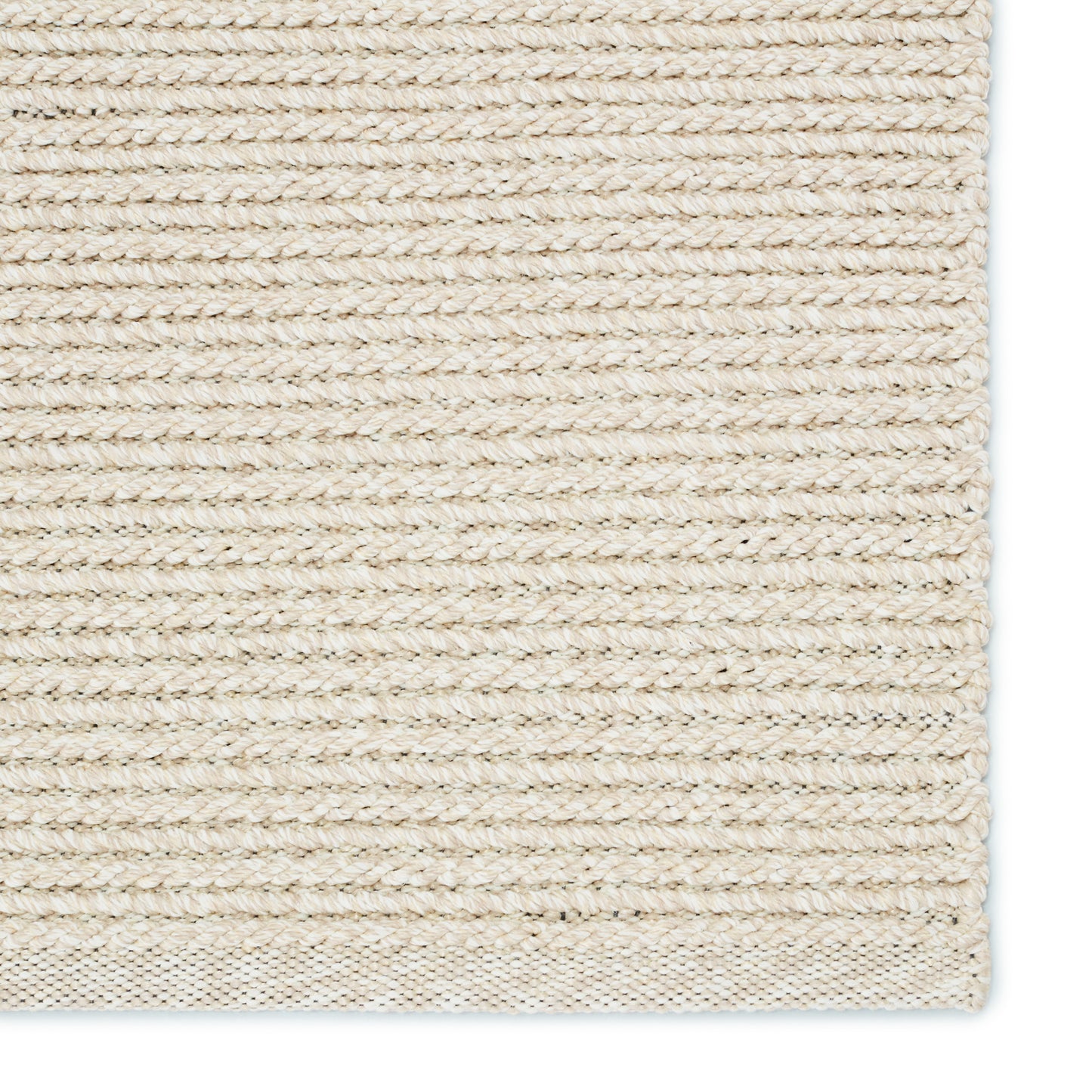 - The heathered design of the Raynor rug features a beige and ivory colorway that anchors spaces with a light and airy tone.