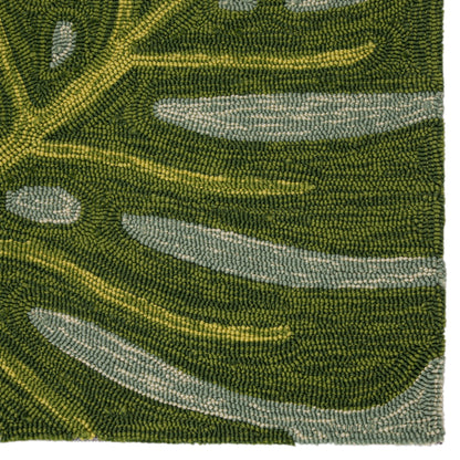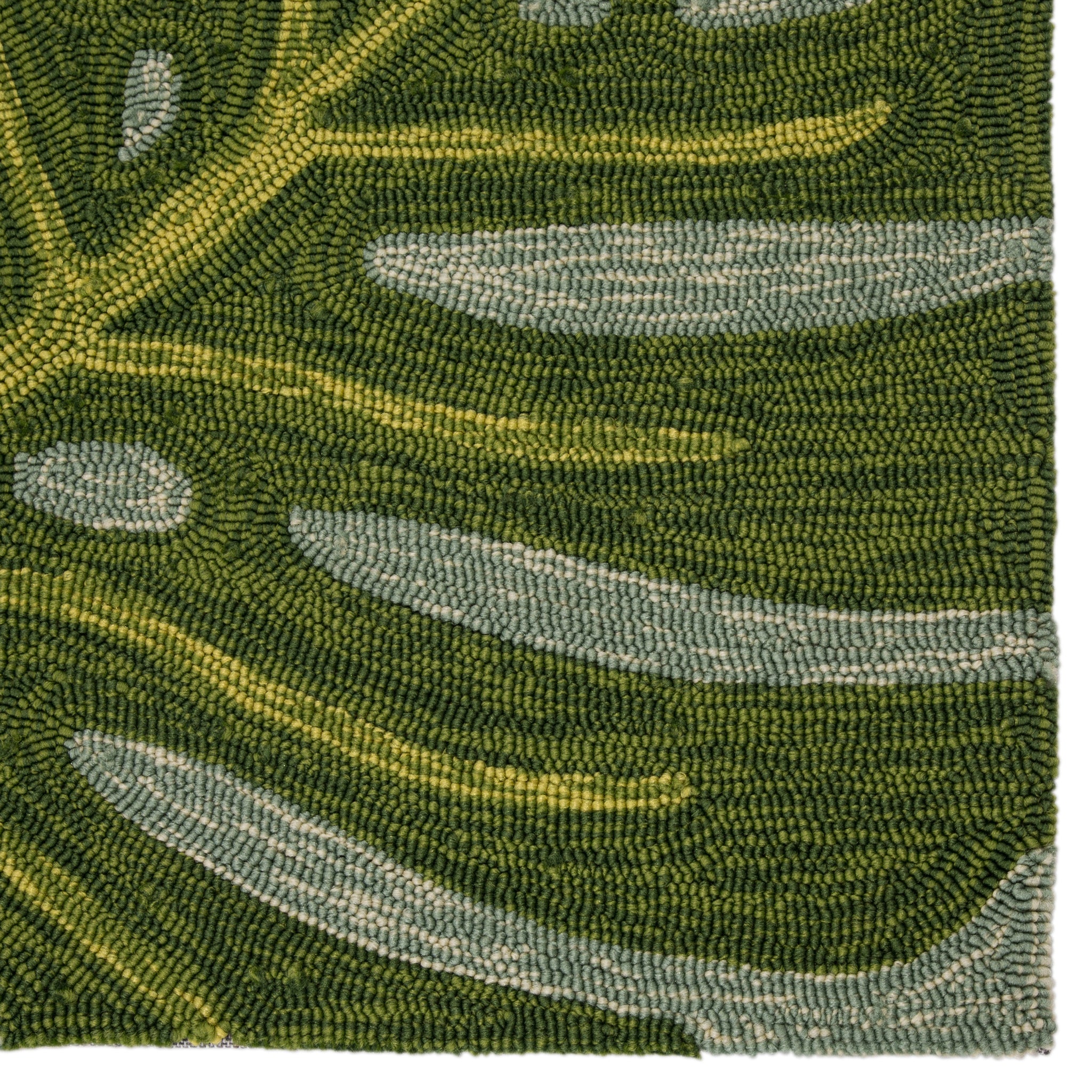 - Vibrant beach botanicals create a graphic statement on the light blue backdrop for a bold dose of coastal style, while the looped pile lends unexpected texture to this durable layer.