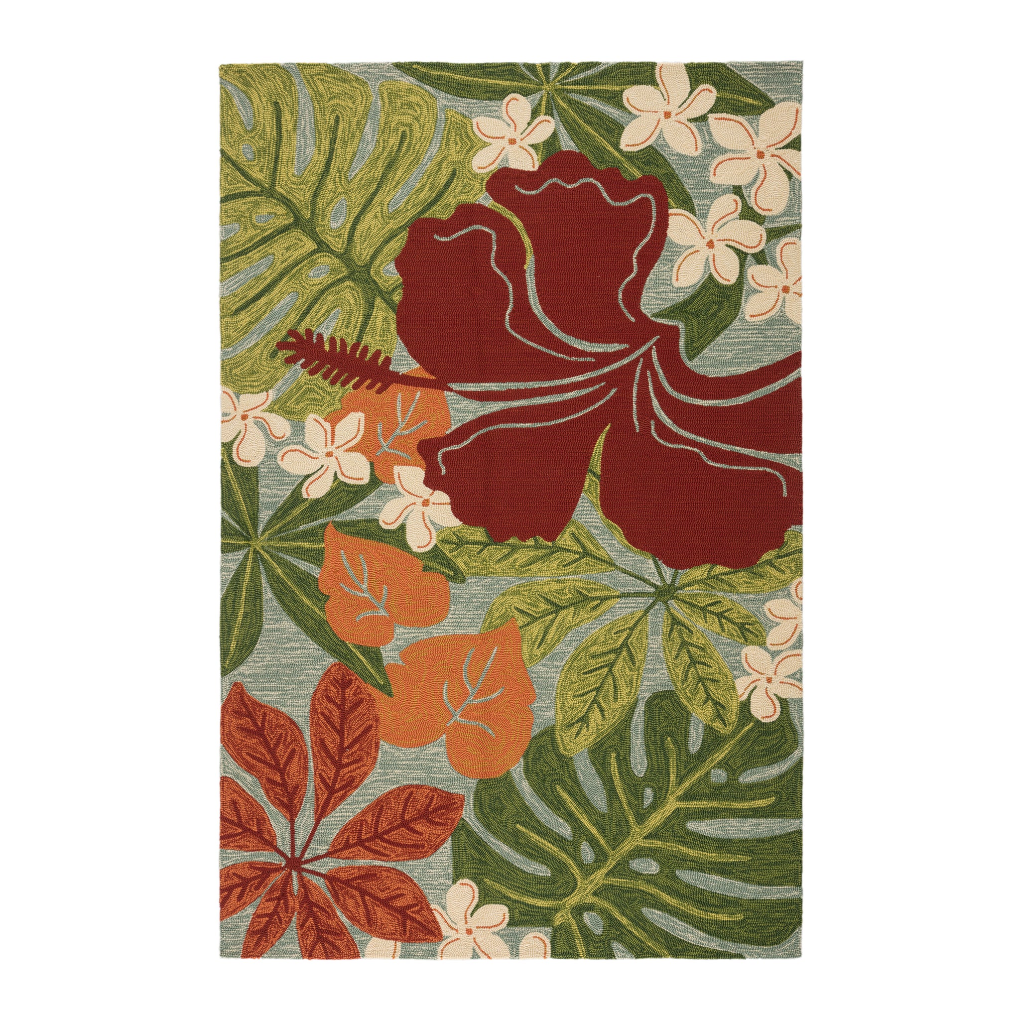 - This playful indoor or outdoor area rug showcases a contemporary design and tropical hues.