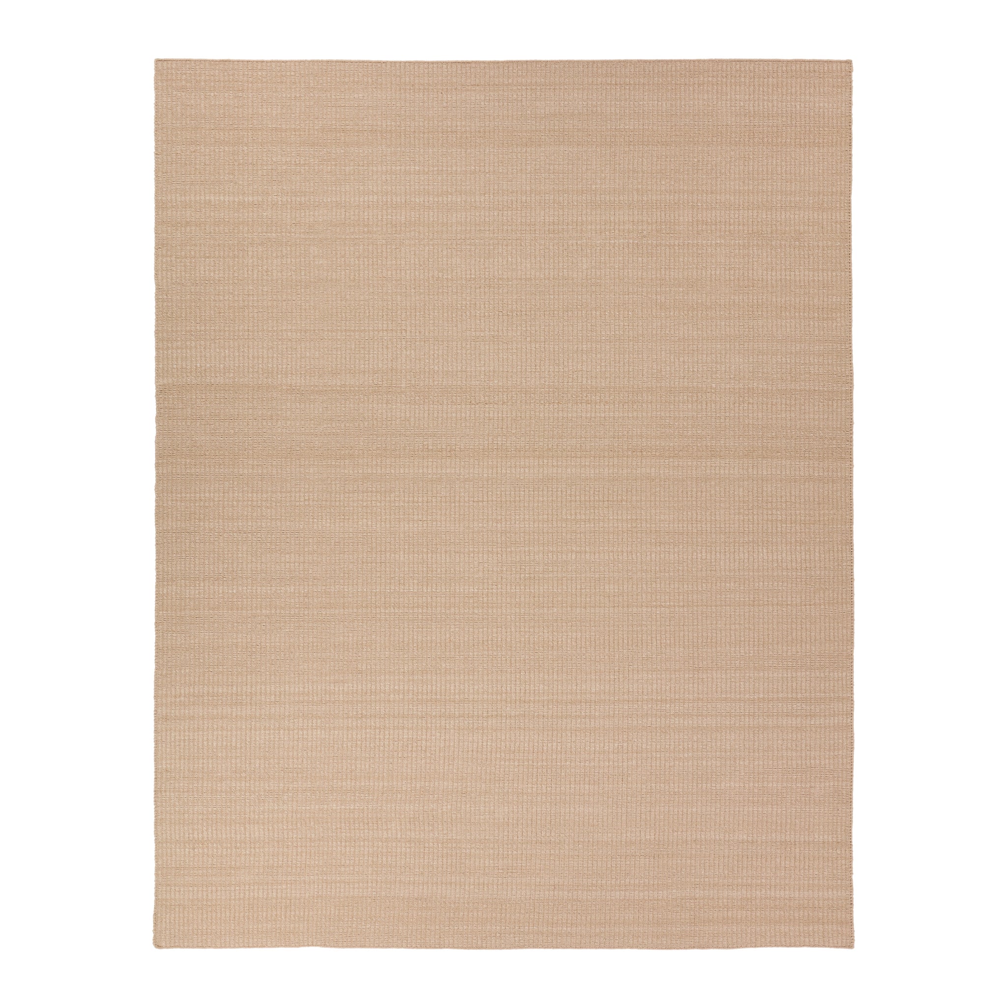 - The Facet area rug features a subtly striped weave in an organic tan color that provides a grounding effect in patios, sunrooms, and living rooms alike.