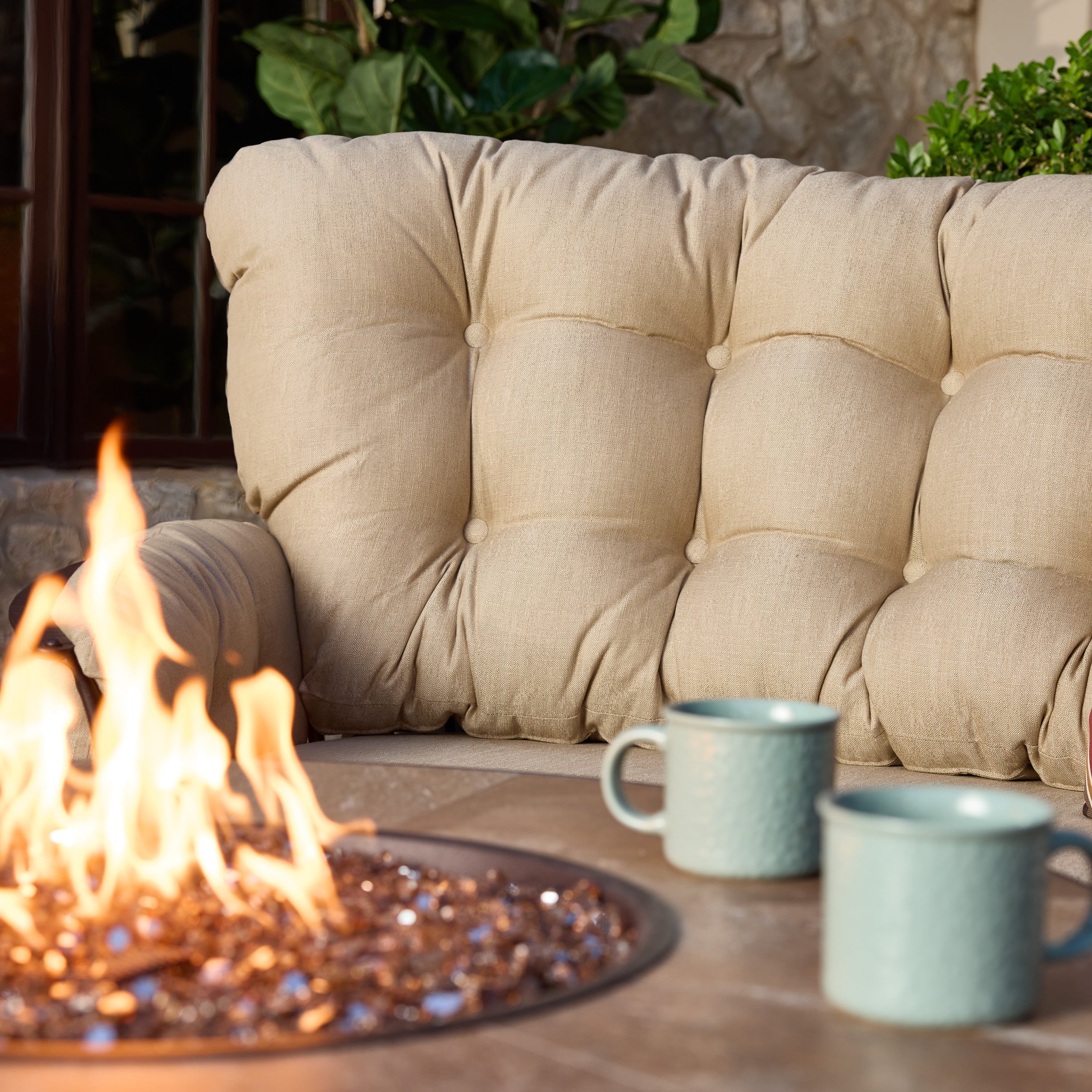 - Fabric: Belgian Linen Sand or Trax Burgundy plush Sunbrella cushions